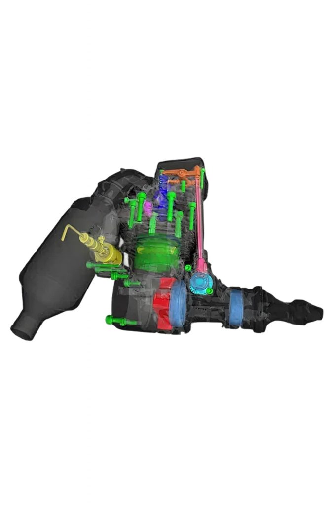 In industrial computed tomography, objects are recorded three-dimensionally as a volume in which they are rotated 360° and thousands of images are taken. The great advantage is that internal structures are also displayed. The scanned model can then be viewed and cut in three dimensions.